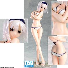 セガ×マックスファクトリー×ホビージャパンによる強力コラボ企画「シャイニング・プロジェクト」。人気ゲームソフト『シャイニング・ティアーズ』からの第2弾は、クールな魅力が人気NO.1の「ブランネージュ」が登場です。「エルウィン」に続き人気イラストレーターTony氏の描く、透き通るようなイラストをサイトウヒール氏が忠実に立体化。寄せ上げられた胸元、クリアパーツ+パール塗装により透明感&高級感を演出した髪の毛、ローライズにこだわったパンツライン等、見所満載の造型に仕上がっています。クールな彼女の大胆な水着姿、その姿態をご堪能ください。